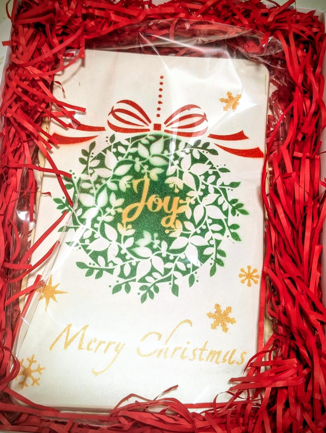 Giant, white chocolate, 750g bar filled with pistachio cream and feuillietine then topped with chopped pistachios.
